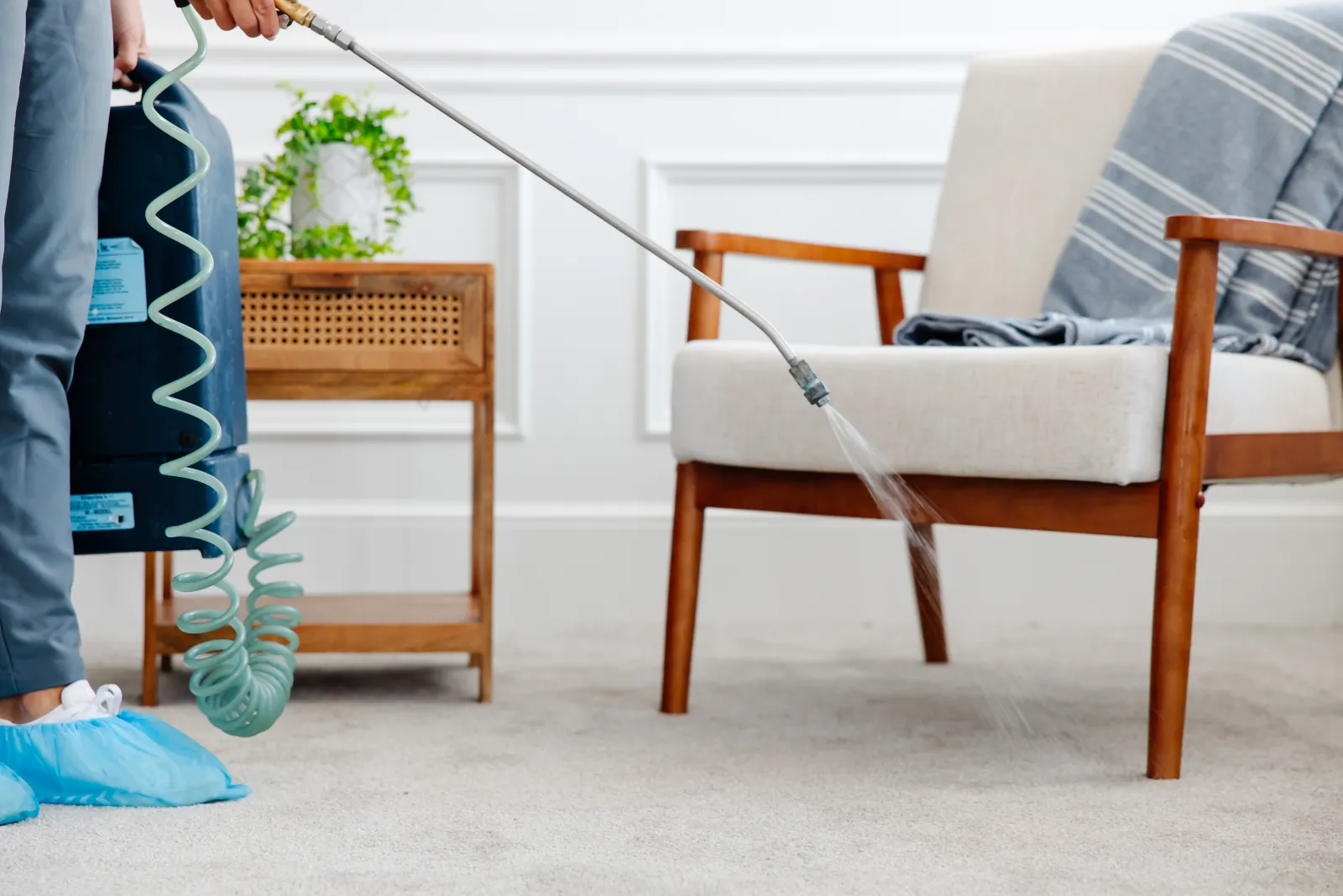 The product that will be applied to your carpet after its cleaning is a clear liquid, virtually indistinguishable from plain water.